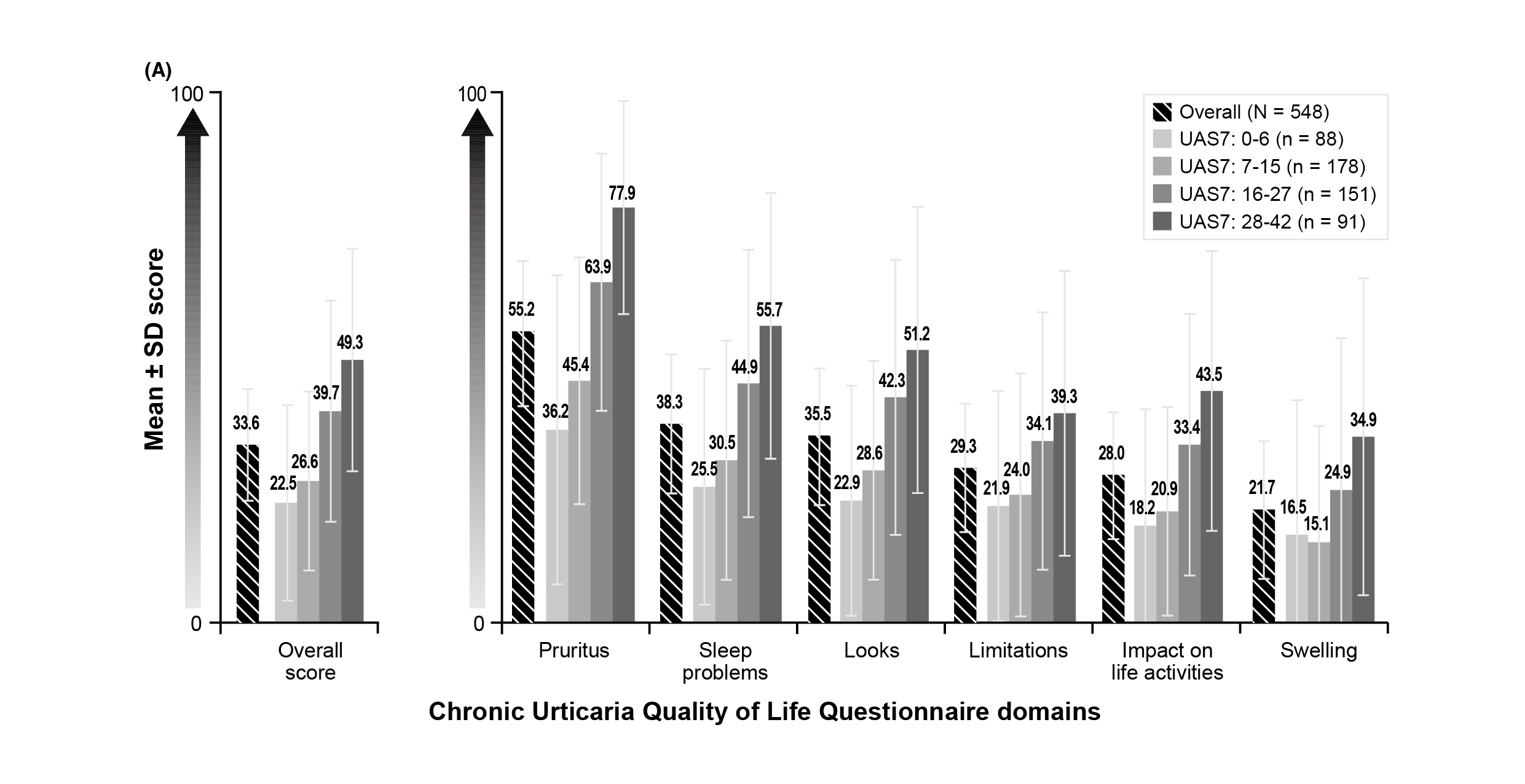 Figure 3. Impact of CSU on health-related QoL8, UAS7: Urticaria Activity Score over 7
