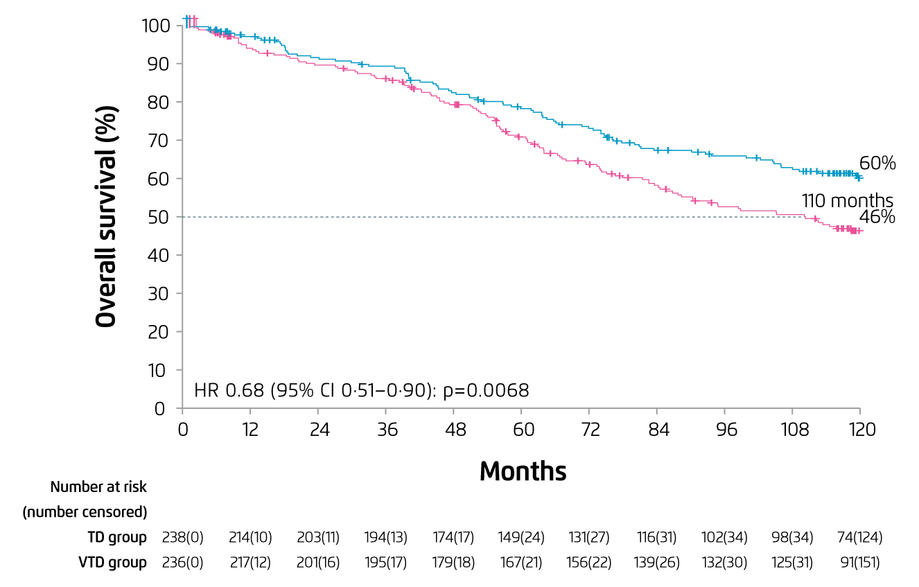 Figure 1. 10-year OS achieved by VTD and TD induction10