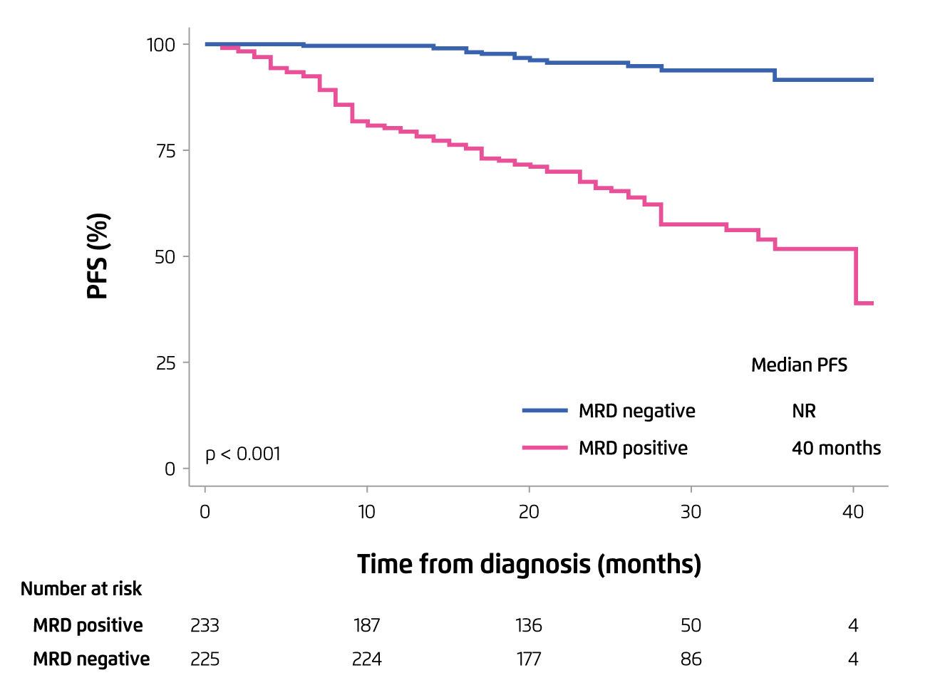 Figure 2. PFS achieved by MRD negative patients versus MRD positive14