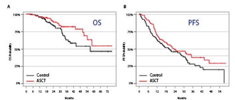 Figure 1.Survival benefit achieved by incorporating chemotherapy consolidation plus ASCT into relapse MM