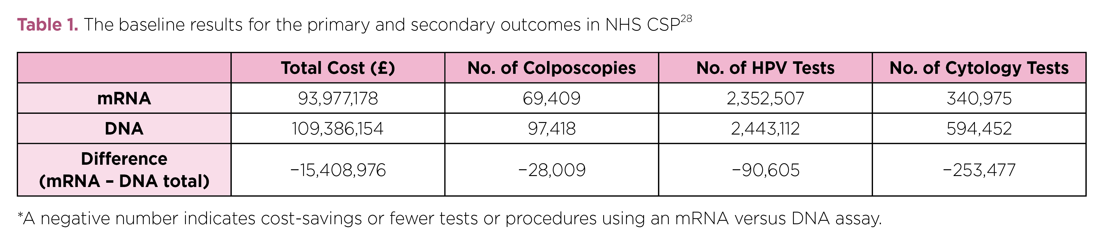 The cost-effectiveness of HPV screening with mRNA assay demonstrated complied with the findings of a former trial in England comparing the impact of using the Aptima mRNA assay versus HPV DNA test, which involved a hypothetical cohort of 2.25 million women aged 25–65 years tested in the National Health Service (NHS) Cervical Screening Programme (CSP). The results estimated that an estimated £15.4 million could be saved and 28,009 unnecessary colposcopies averted if Aptima mRNA assays were used instead of HPV DNA test, with 90,605 fewer unnecessary high-risk HPV tests and 253,477 cytology tests performed (Table 1)28.