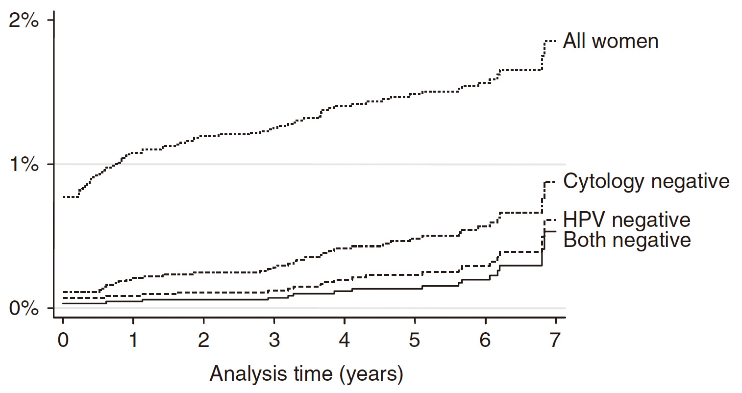 Figure 3. Cumulative incidence of CIN 2+ according to baseline results