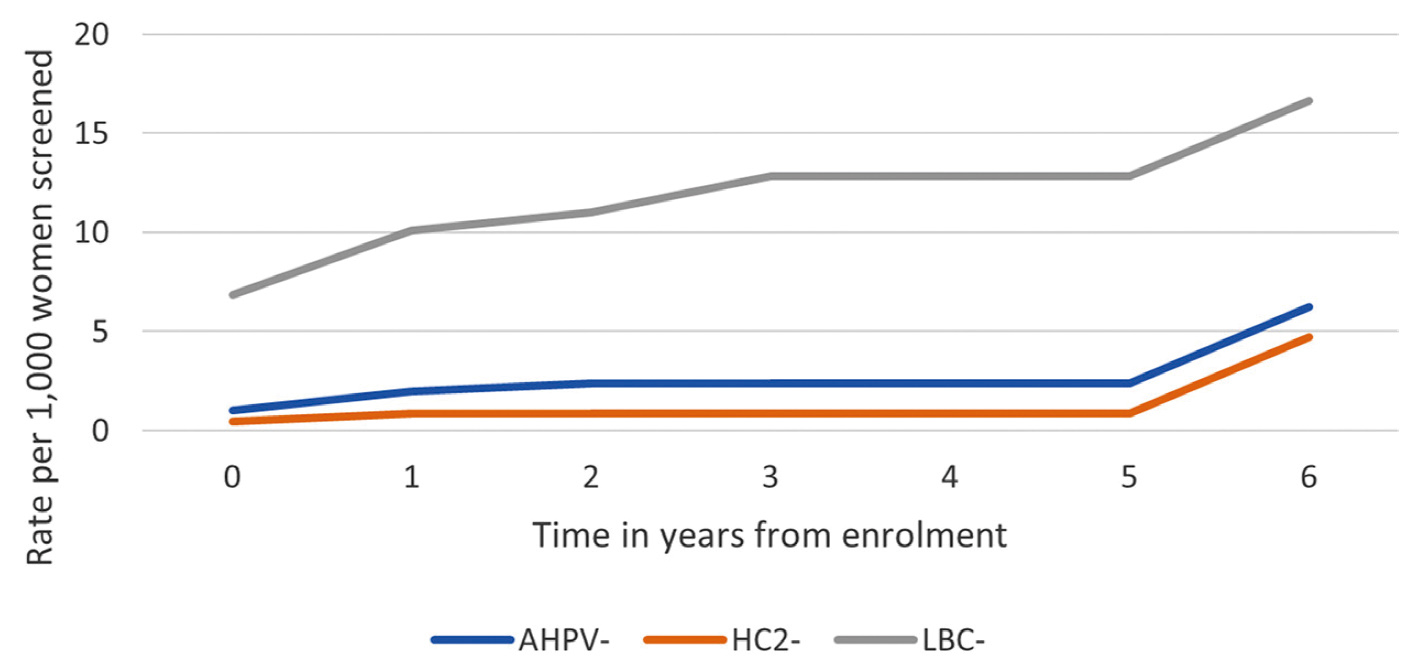 Figure 4. Rate of CIN 2 or worse by time from enrolment24
