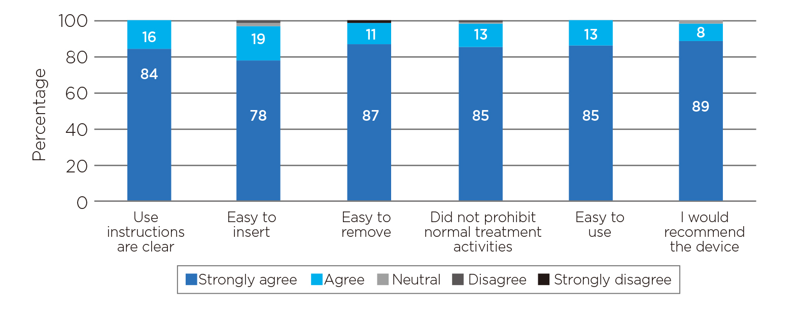The PERALE study also evaluated the usability of the VIHC device from the clinicians’ perspective that 97% of all clinicians included recommended the VIHC device for the treatment of abnormal postpartum uterine bleeding and PPH and 98% of them reported that the device was easy to use (Figure 3)9.
