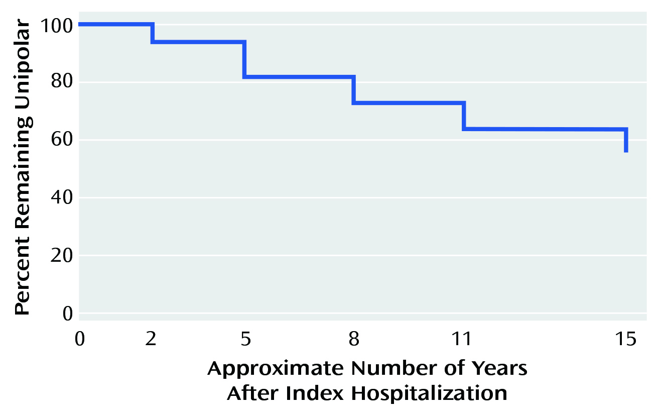 Figure 1. Survival analysis showing the proportion of patients remained unipolar over 15 Years5