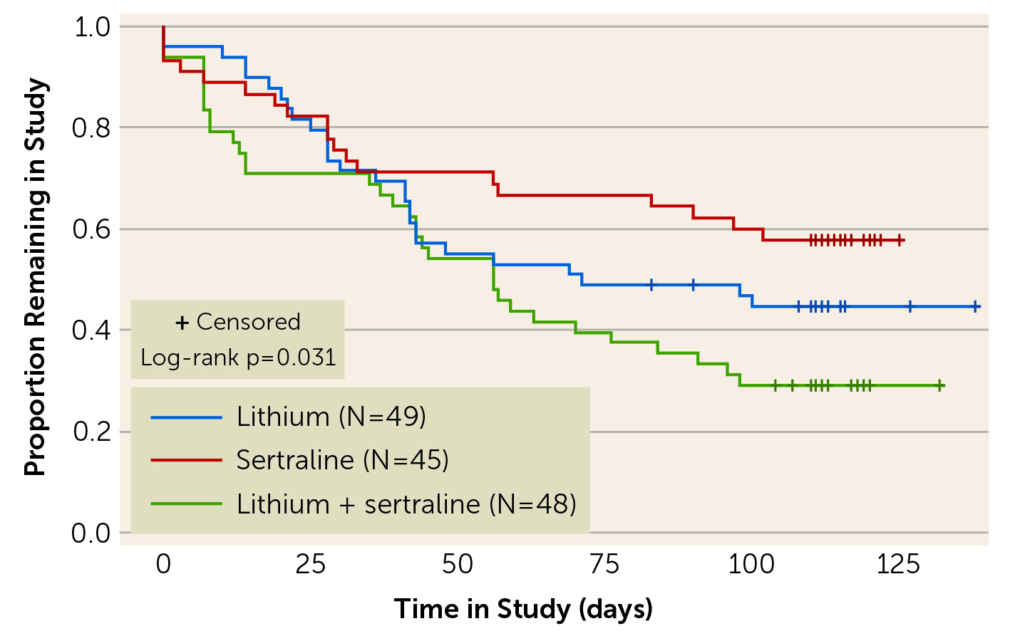 Figure 2. The dropout over time in patients received lithium, sertraline, or both7