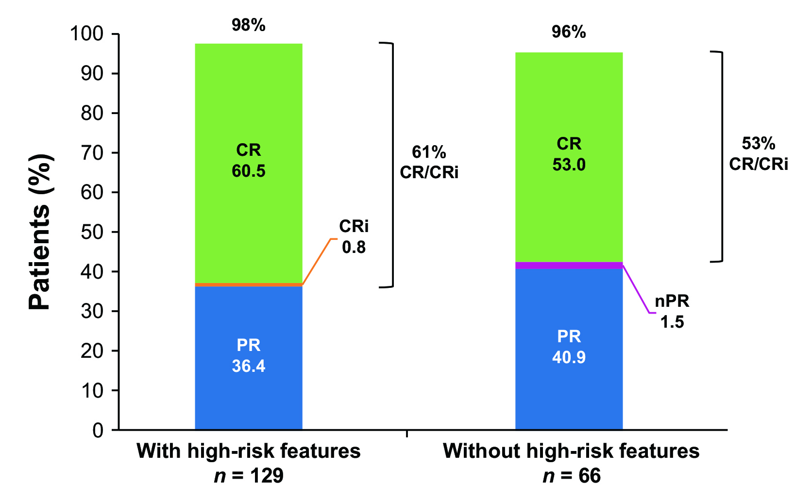 Figure 2 . Best overall response in CLL patients with and without high-risk features2