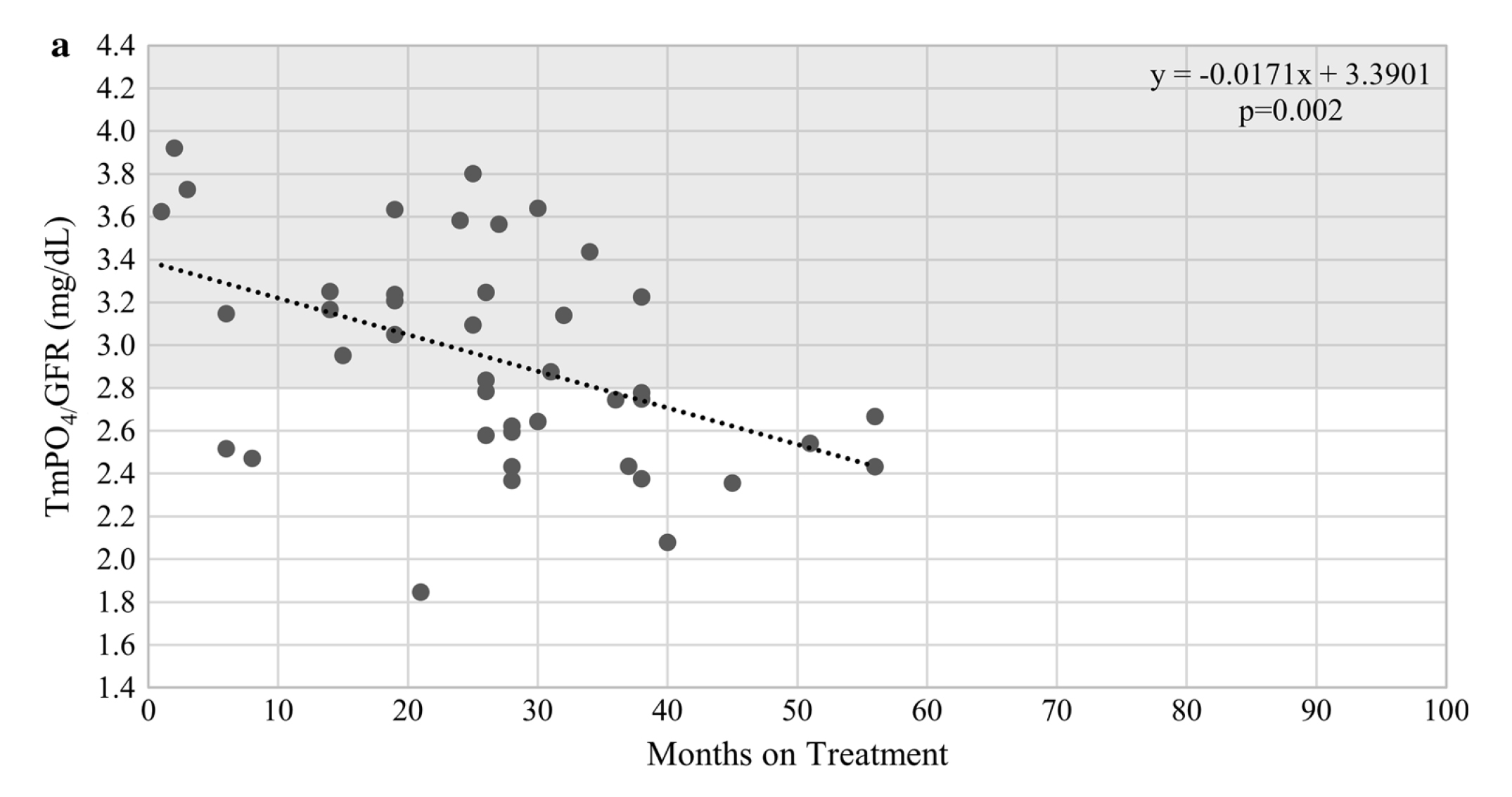 Figure 1. TmPO4/GFR over time for patients treated with TDF7, TmPO4/GFR: maximal rate of tubular reabsorption of phosphate over glomerular filtration rate