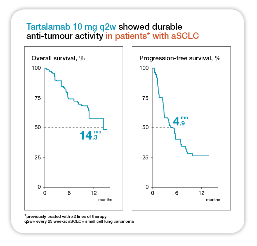 Small-cell lung cancer (SCLC) is an aggressive lung cancer subtype with neuroendocrine differentiation diagnosed in more than 150,000 individuals globally each year. The 3-year survival rate for patients with extensive stage (ES) SCLC is around 6%, with addition of novel therapy, there is only a modest survival gain for a small subset of patients with ES-SCLC1. Furthermore, available therapies are limited for most patients with SCLC who relapse. Interestingly, the most widely used second-line agent, Topotecan has shown to have limited efficacy and an unfavourable safety profile and so far, no agent is specially designed for third-line treatment of relapsed SCLC. However, this is about to change with the bispecific T-cell engager molecule that binds to delta-like ligand 3 (DLL-3) and cluster of differentiation 3 (CD3) leading to tumour lysis1.