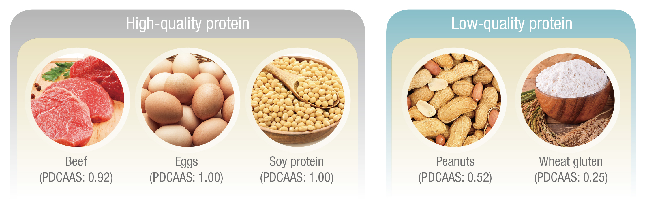 Figure 2. Protein quality of common food products9, PDCAAS: Protein Digestibility Corrected Amino Acid Score