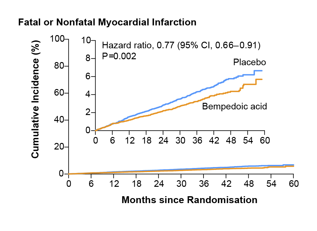 Figure 3. Cumulative incidence of fatal or nonfatal myocardial infarction (the second key secondary endpoint)18. CI, confidence interval.