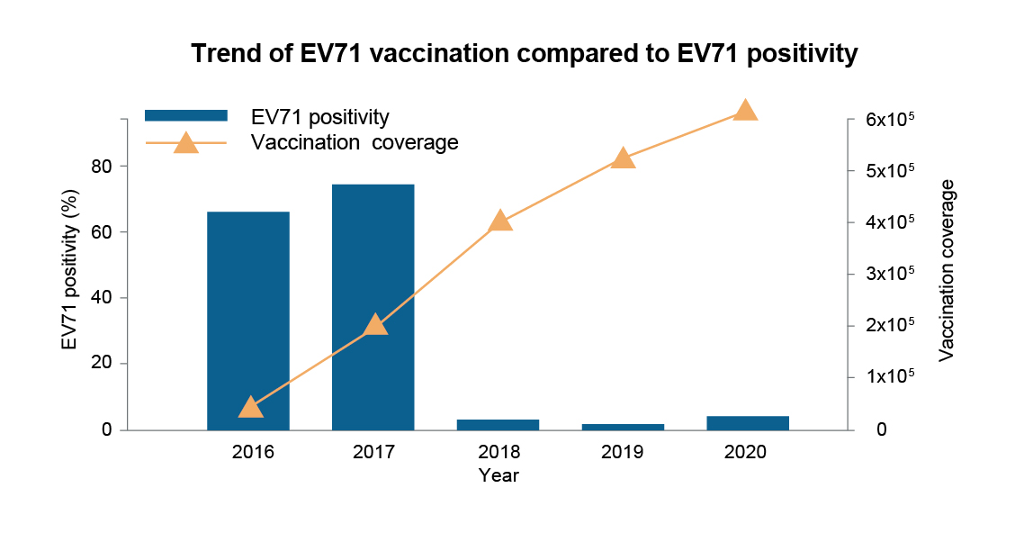 Figure 3: EV71 vaccination coverage and EV71 positivity.29 EV71, enterovirus 71.