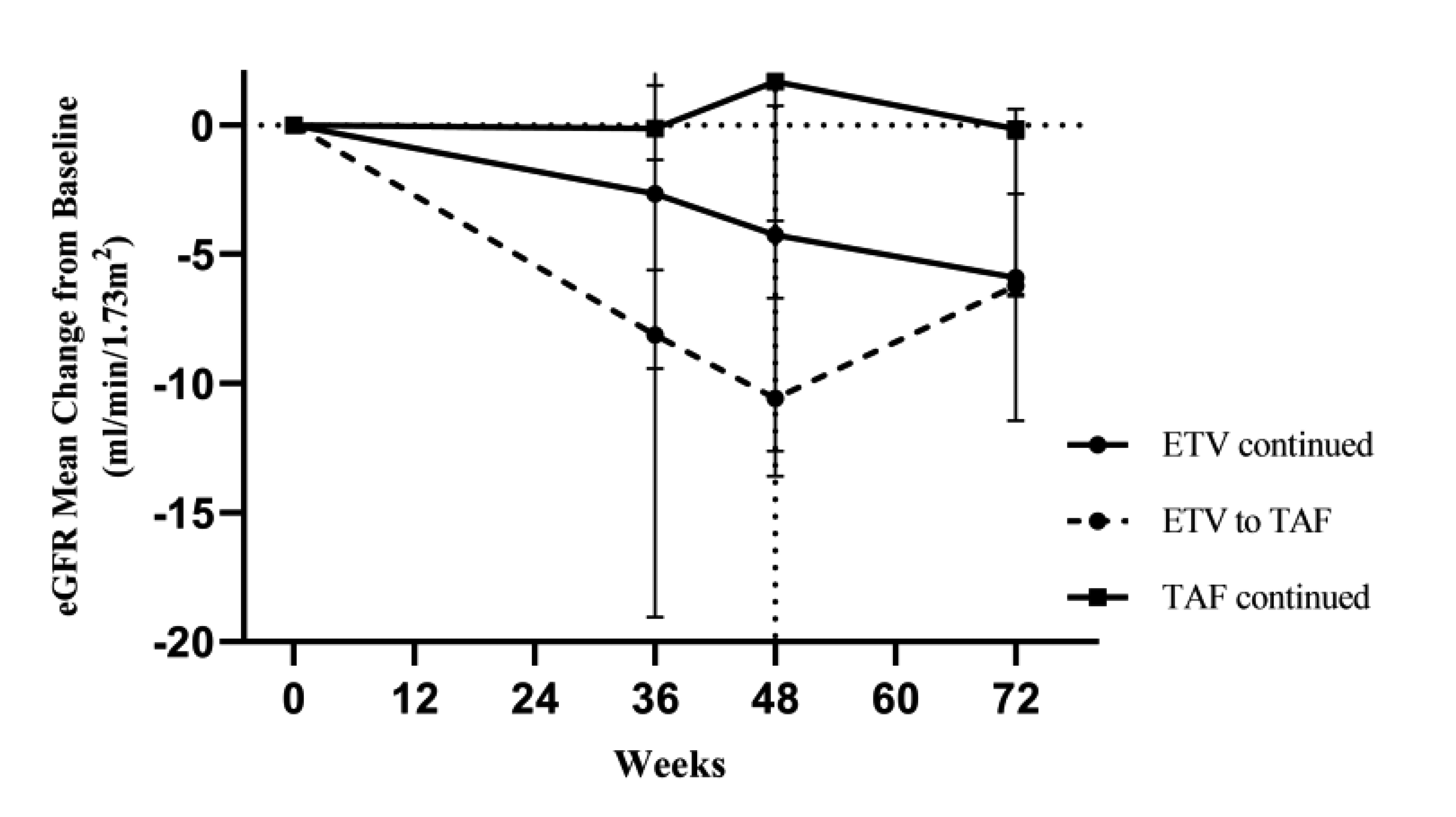 Figure 2: Increased eGFR upon switching from ETV to TAF at week 486