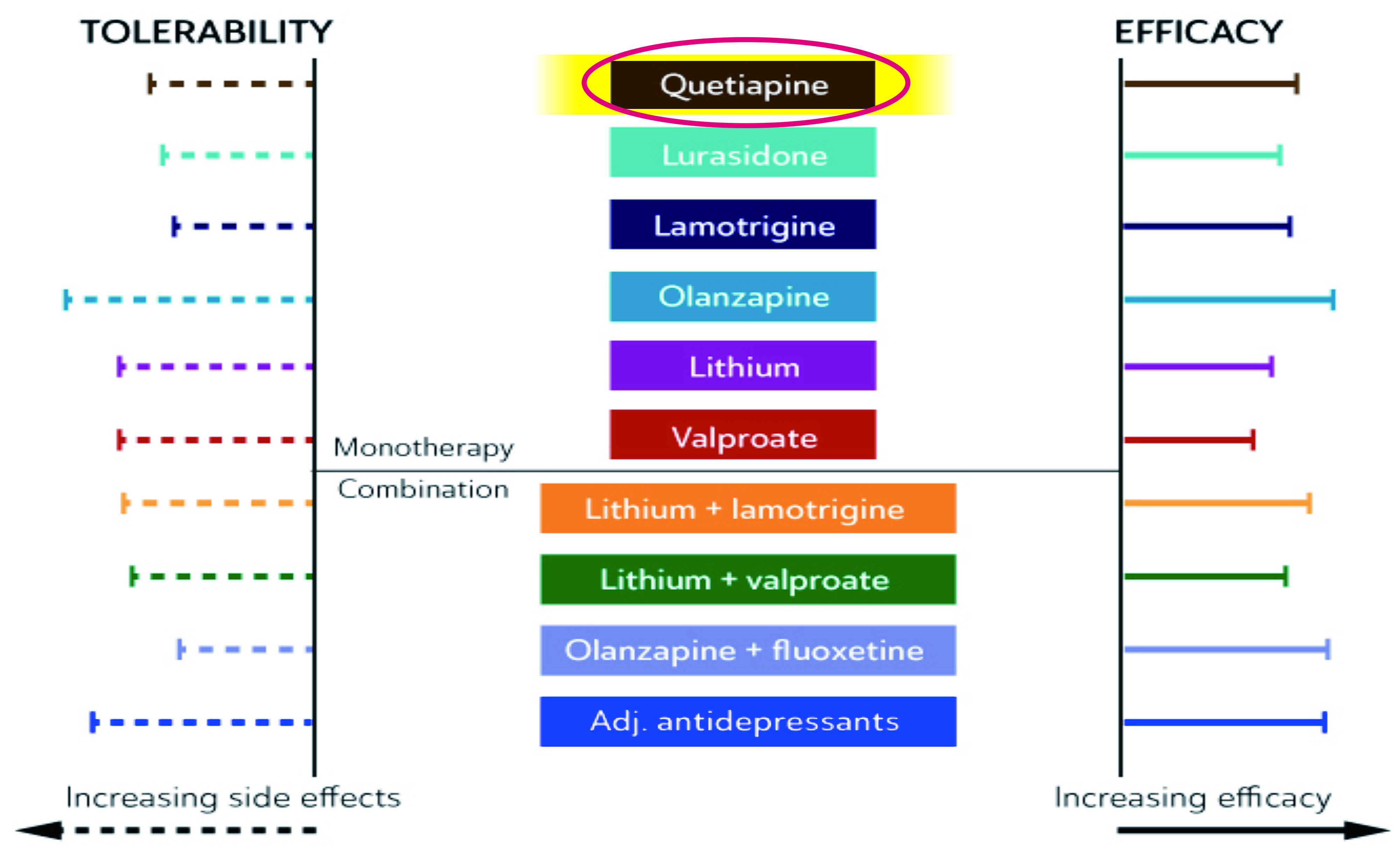 In the Canadian Network for Mood and Anxiety Treatments (CANMAT) guidelines 2018, recommended pharmacological treatments include acute mania, prevention of any mood episode, prevention of mania, prevention of depression, and acute depression10. Prof. Hopwood commented that the classification may not be helpful since a patient with bipolar disorder would need a choice covering all of the indications.