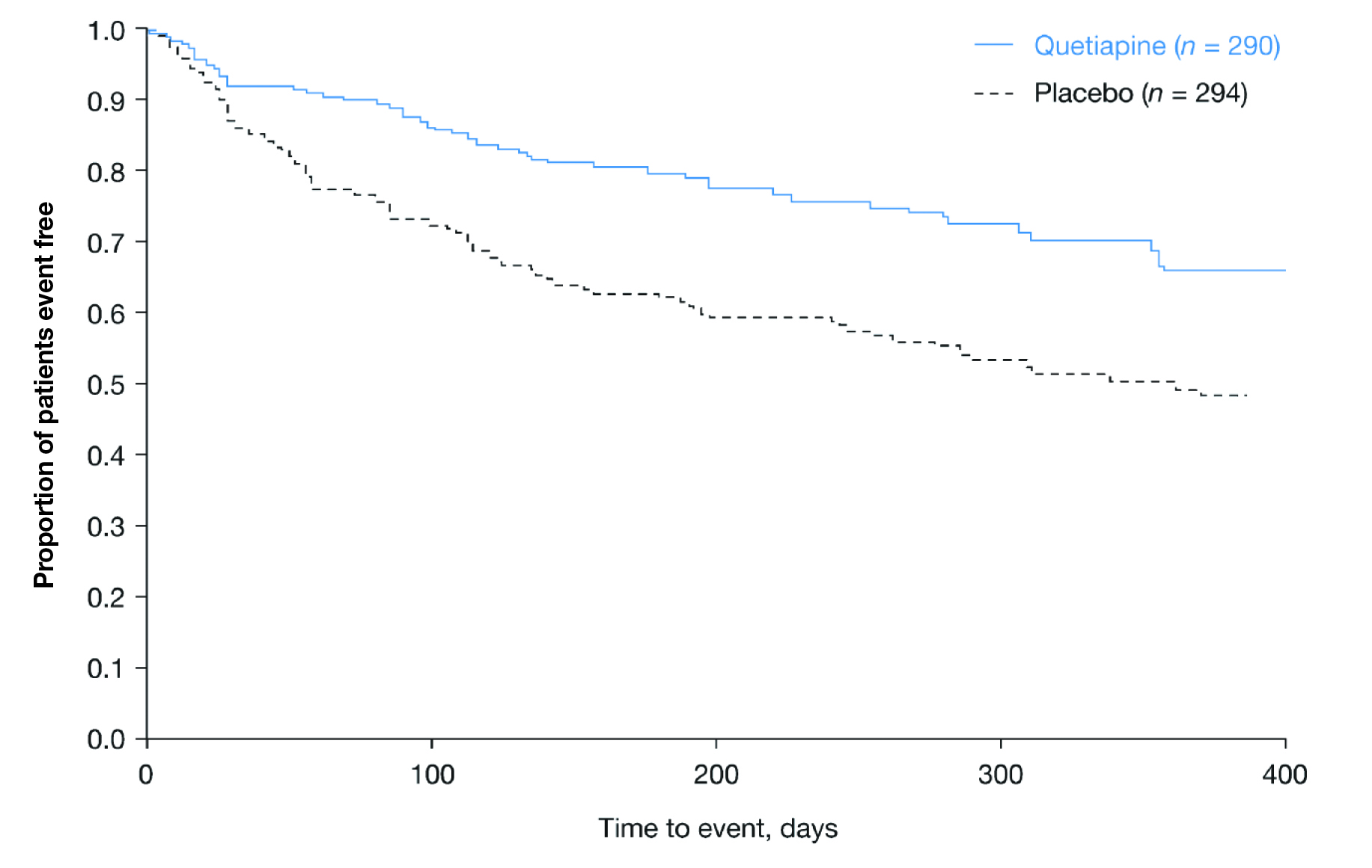 Figure 5. Time to recurrence of any mood event in the continuation phase14