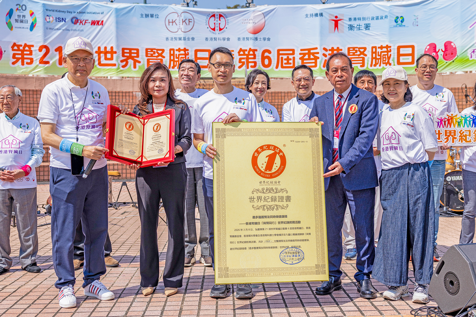 The “Mega Exercise” marked the highlight of the Kidney Health Activity Day, jointly organised by the Hong Kong Kidney Foundation, the Hong Kong Society of Nephrology, and the Hong Kong Association of Renal Nurses. The event was held in support of the 21st World Kidney Day and the 6th Hong Kong Kidney Day.